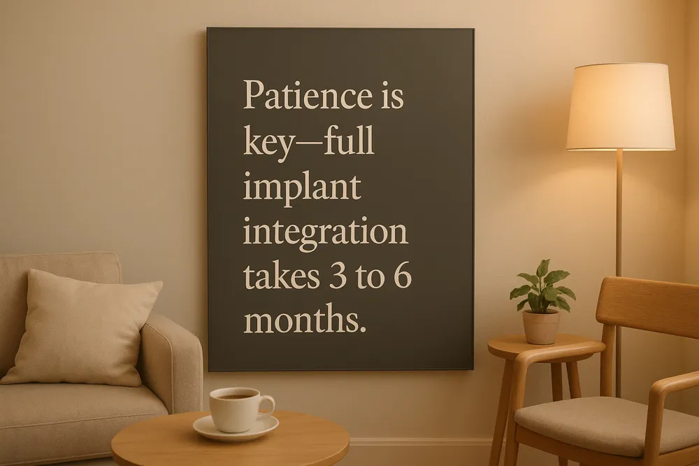 The osseointegration phase generally takes between 3 to 6 months. During this time, the bone cells grow and adapt around the implant surface, ensuring a durable and long-lasting connection. Although initial gum healing after dental implant happens within the first couple of weeks, full bone integration requires patience, as it is essential for the implant’s long-term function.