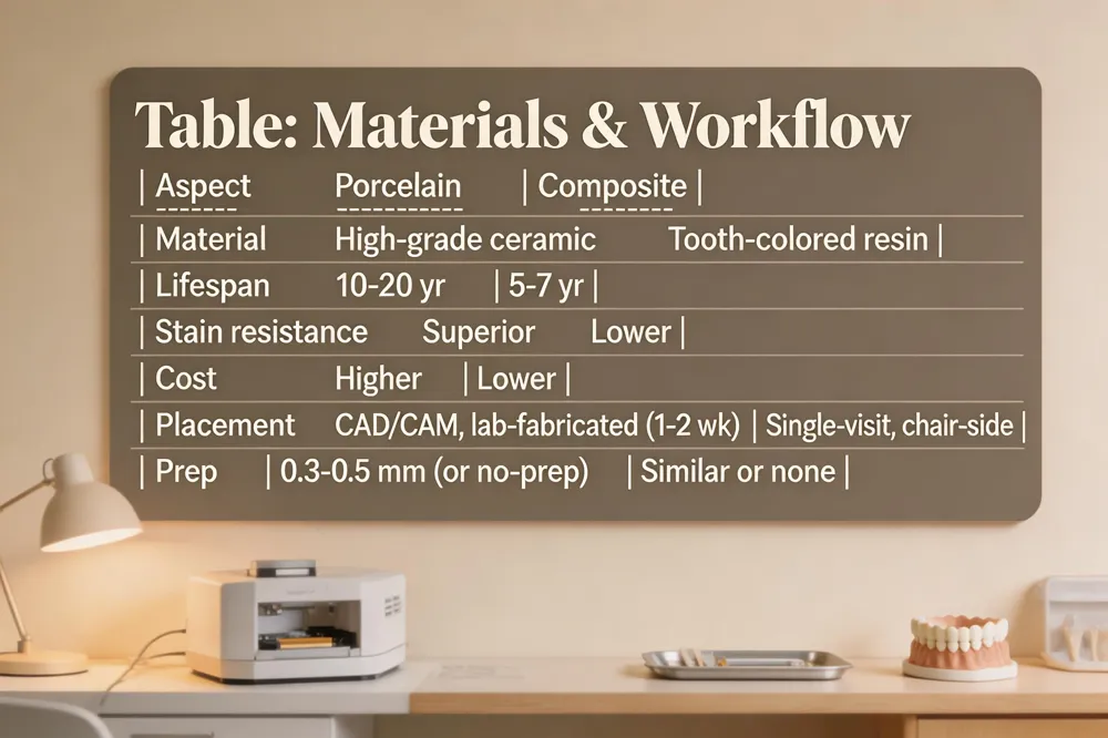 | Modern dental veneers combine advanced materials science with digital workflow to deliver a natural‑looking, durable smile. Materials: porcelain vs. composite – Porcelain veneers are fabricated from high‑grade dental ceramics that mimic the translucency and light‑reflective qualities of natural enamel, offering superior stain resistance and a lifespan of 10‑20 years when cared for properly. Composite veneers, made from tooth‑colored resin, are less expensive and can be placed in a single visit, but they are more prone to staining and typically last 5‑7 years. Both materials are biocompatible, yet porcelain’s hardness and low porosity make it the preferred choice for long‑term aesthetics. |