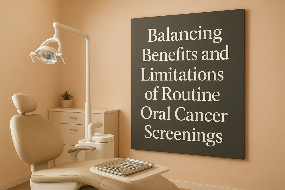 Although oral cancer screening has not been conclusively shown to reduce mortality, its advantages in early detection outweigh its limitations for many patients. Screenings are quick, painless, and easily incorporated into routine dental visits, making them accessible preventive measures. The potential risks related to false alarms and overdiagnosis can be addressed through follow-up biopsy and oral surgeon or ENT specialist referral. Education on risk factors and symptoms complements screening to improve outcomes.