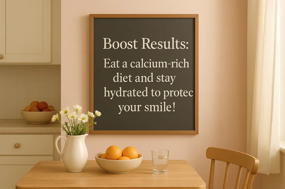 A diet rich in calcium (found in dairy products) and fiber (from fruits and vegetables) supports strong enamel and overall oral health. This sustains whitening results by reducing susceptibility to stains and decay. For more about Diet for Oral Health.