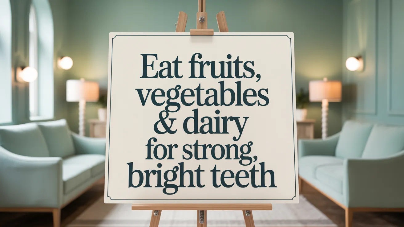 Saliva plays a vital role in washing away food particles and neutralizing acid. Eating protective foods—such as fruits, vegetables, cheeses, and healthy proteins—and drinking plenty of water promote saliva production and oral health, which contribute to a polished, stain-free smile. See fruits and vegetables for teeth and Regular teeth cleaning.
